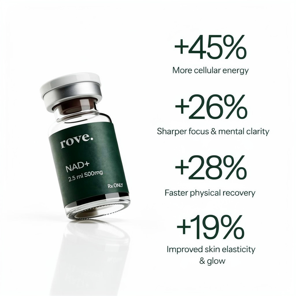 The Rove NAD+ Injection Vial is a carefully prepared formulation containing NAD+. It is produced with attention to formulation quality, preparation standards, and consistency.